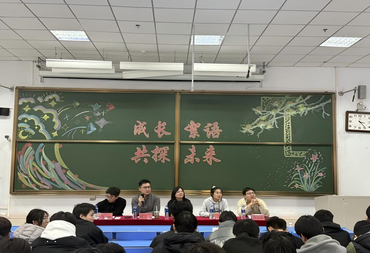 在互动环节中,学生围绕职业选择、行业门槛、实习机会等问题与校友深入交流,现场气氛热烈。最后,刘晓东老师作总结发言,对四位校友的分享表示感谢,并鼓励全体同学以优秀校友为榜样,夯实专业基础,提升综合素养,科学规划学业与职业发展路径。